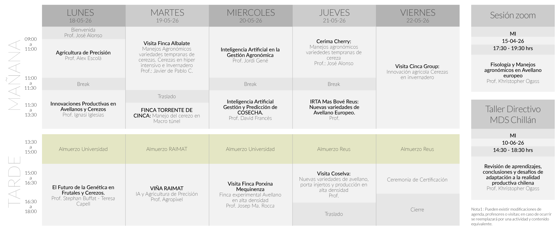 En el programa de una semana intensiva los participantes combinarán clases dictadas por desatacados profesores e investigadores con visitas a importantes empresas frutícolas y agroindustriales donde conocerán exitosas experiencias de innovación y podrán establecer contactos y reuniones de negocios con comercializadores, productores y proveedores de insumos.